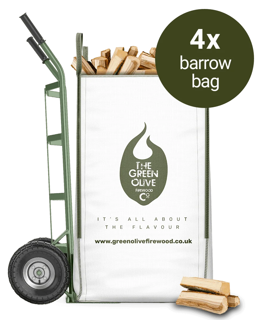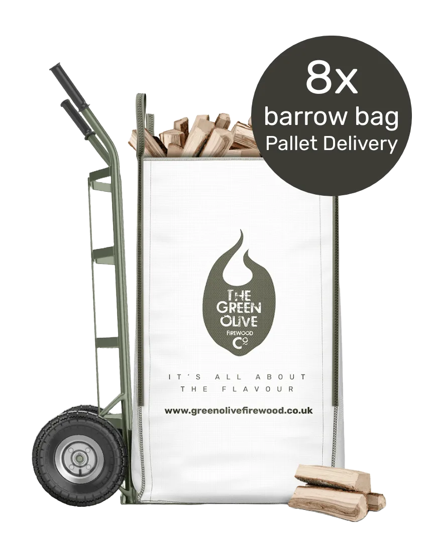 All bulk orders are transported via our delivery partners and will reach you on a pallet. All deliveries will be booked in before a delivery takes place to ensure a smooth transition to you. You have the option to have them left if you are not home and this can be discussed when they call you to arrange a suitable date.Barrow Bags: Perfect for easy transport, each bag holds approximately 0.28 m³ of logs, accommodating 90-110 kiln-dried logs.2 Barrows: ~0.56 m³ 4 Barrows: ~1.12 m³Dumpy Bags: A robust choice for bigger demands, holding 2.5 barrows (~0.8 m³) worth of logs, ideal for larger spaces. Upwards of 250-300 logsJumbo Bags: For the ultimate needs, our Jumbo bags contain approx. 550-600 logs. Transporting Logs Made EasyOur barrow bags are designed for effortless movement around your property. Easily manoeuvrable with a sack truck or wheelbarrow, they glide through doorways, garden gates, and narrow pathways, making positioning near your storage area a breeze. Both the Dumpy and Jumbo bags require manual emptying via a wheelbarrow. These bags are very large and heavy.Experience a touch of luxury with Green Olive Firewood, where every log ignites elegance in your homeFrequently Asked Questions